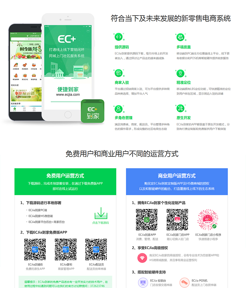 免费使用提供自助支持:ECJia到家千人官方交流群(372623746)、在线手册、使用教程、视频教程、问答堂等