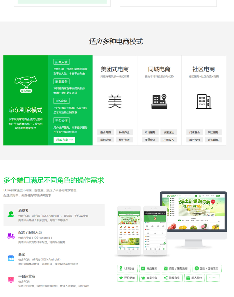 ECJia到家H5全面开放源码,采用HTML5+CSS3及PJAX技术开发,操作便捷体验流畅,后台系统采用自主研发框架,PHP+MYSQL支持多数据库操作,管理模块健全完善,并预留超多API接口,具备强大的扩展性。更有 LBS定位技术,通过移动终端GPS获取用户位置;采用自主研发框架,PHP+MYSQL、HTML5+CSS3及PJAX技术开发;利用模块化技术,合理解构商城系统,设计开发形成标准化模块组件;双平台分离,为O2O商城系统平台和商家,分别设计开发独立后台,并预留超多API接口,方便系统功能扩展;采用关系型数据库MySQL,支持多数据库操作。