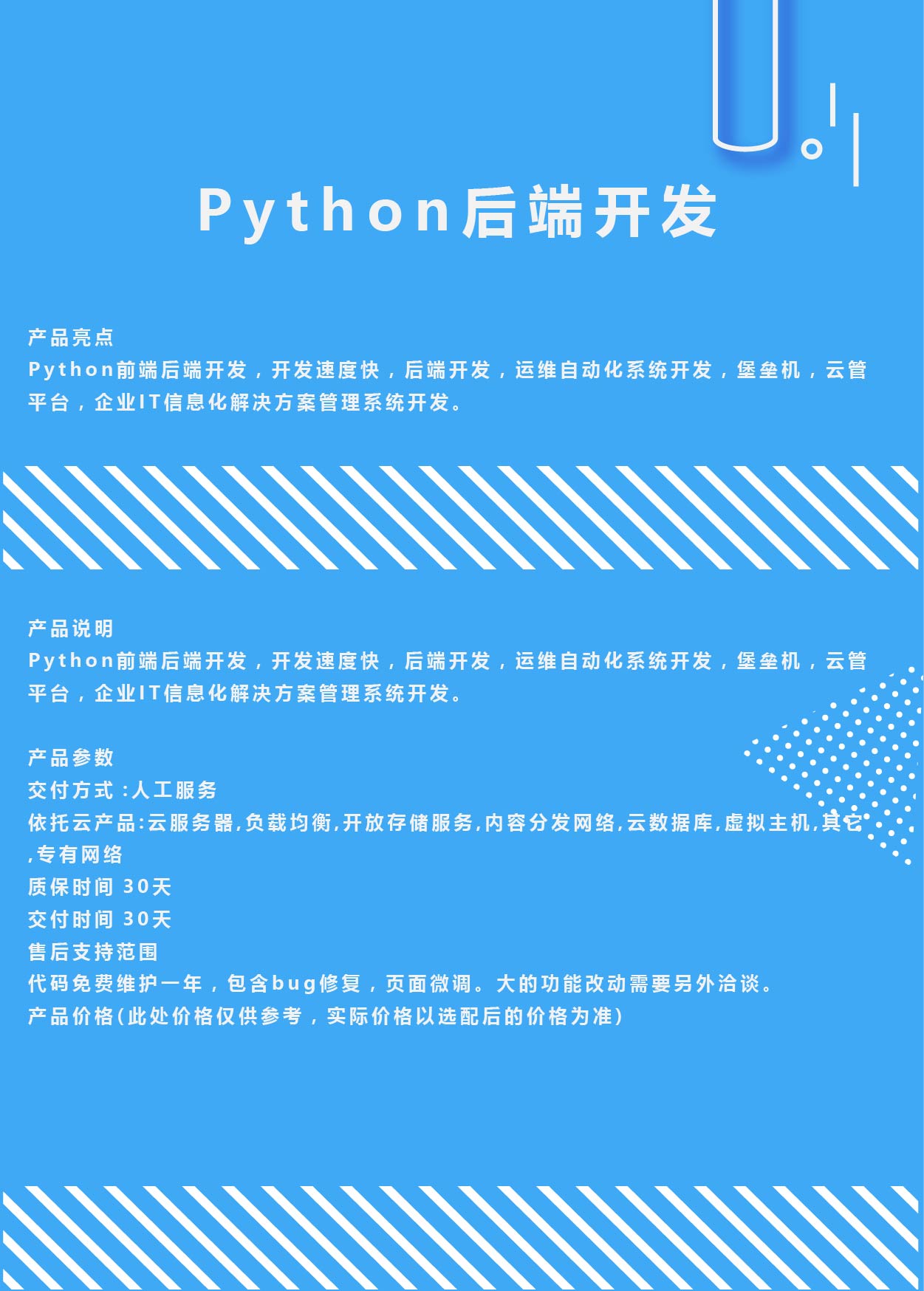 Python软件开发,后端开发,运维自动化系统开发,堡垒机,云管平台,企业IT信息化解决方案管理系统开发。