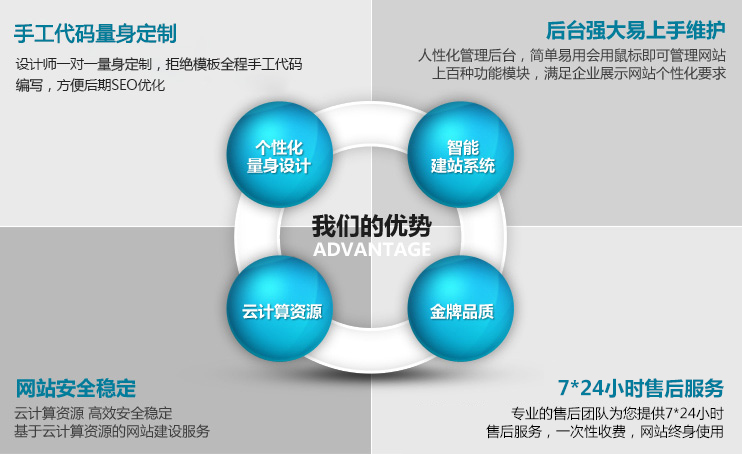 资深设计师一对一量身定制,精美的页面设计充分展现您的特色,独享功能开发更加贴合您的使用,专门的程序编写有效保障您的使用安全。一站一码,可扩展性强,兼容性好,代码符合搜索引擎规则,利于SEO优化。