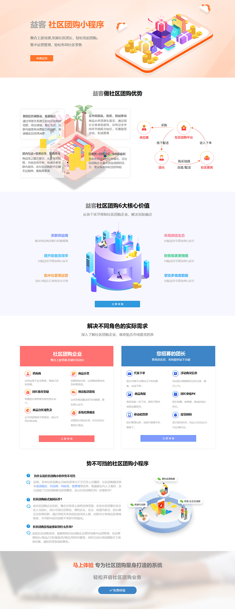 轻松搭建社区团购平台,可对接供应商。整合上游货源,发展社区团长,轻松发起团购。集中运营管理,轻松布局社区零售