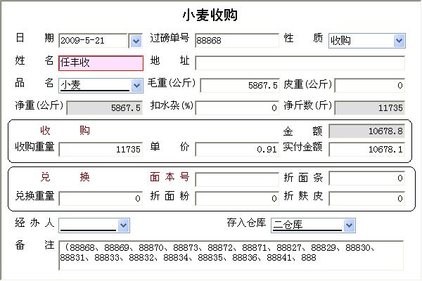 《面粉厂管理系统专业版》是针对面粉厂管理而专门设计的一款管理软件。系统界面简洁,菜单功能一目了然。其中包含基本信息、入库管理、出库管理、库存管理、其它收入支出、期间查询、统计七个模块。有助于管理员提高工作效率,提升经营质量。科学的管理方法会给您带来无限效益,储存、兑换、支取、销售问题迎刃而解,面粉厂管理系统专业版将是您工作的好帮手。 系统的主要项目功能包括以下内容: 一、基本信息(车间生产数、储存人信息、储户原有库存数、储户原有库存数合计) 二、入库管理(小麦收购、外站转入、面条入库、购买面条储存) 三、出库管理(销售、本站转出、支取、农户储存卖出(面粉、麸皮和面条)) 四、库存管理(小麦库存、精粉库存、一粉库存、二粉库存、次粉库存、麸皮库存、面条库存、个人库存) 五、其它收入支出(其它收入、其它支出) 六、期间查询(收购期间查询、存入期间查询、收购以加兑换查询、按姓名查询、按面本号查询) 七、统计(金额统计、小麦收购统计) 此软件具有极强拓展空间,可以根据不同的需求进行调整和修改,也会随着管理法的改动而升级,网站提供免费的下载试用,该软件购买之后将提供终生的免费升级、免费技术支持。我们的服务理念是:专业、及时、真诚。如有任何问题欢迎联系我们:联系电话:0635-8386265(销售部)0635-8386255(技术部) |