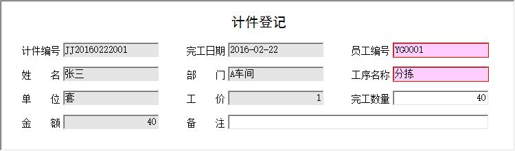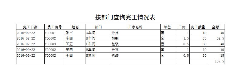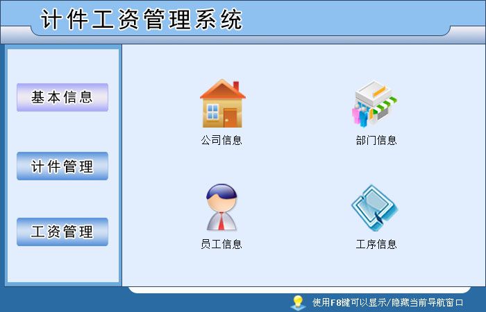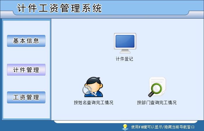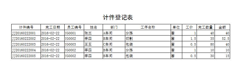 计件工资管理系统》是一套根据工序按计件核算工资的劳动密集型行业而开发的软件。主要包括:基本信息、计件管理、工资管理三大模块。信息录入全面,完整记录员工完工情况,让您了解全面,统计分析功能强大,实时查看员工的完工量以及工资情况,让您一目了然! 系统包含以下三大部分: 1.基本信息:公司信息、部门信息、员工信息、工序信息; 2.计件管理:计件登记、按姓名查询完工情况、按部门查询完工情况; 3.工资管理:本月计件工资明细、本月员工工资明细。 软件特点: 1.支持数据与excel的导出与导入; 2.查询统计功能强大; 3.信息管理方便简单。