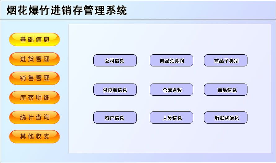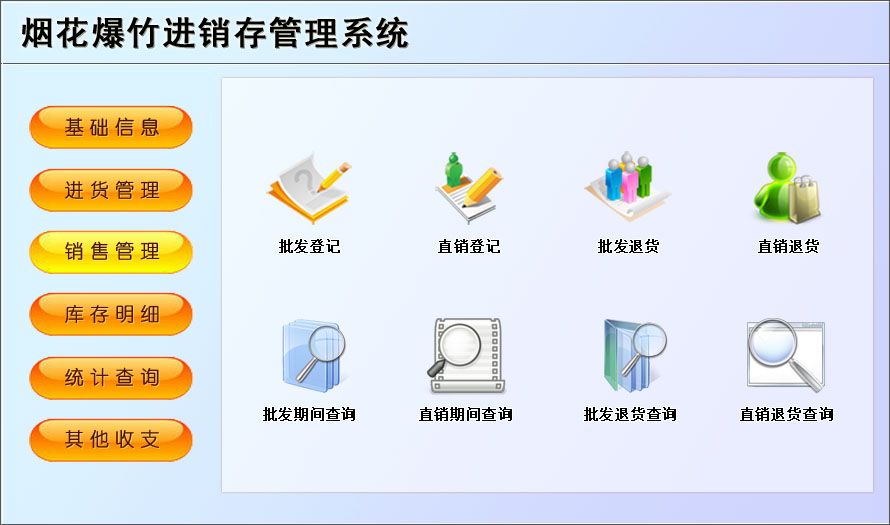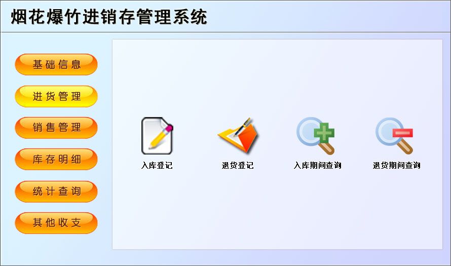 《烟花爆竹进销存管理系统》是一套针对以烟花爆竹经销过程中的进销存为核心,库存管理为主线的管理系统,实现进销存的自动化统计管理;适用于各大中小型专卖店、烟花爆竹厂等。各种操作既可以通过菜单进行,又可以通过系统的管理树导航进行。信息录入智能化,极大提高工作效率。