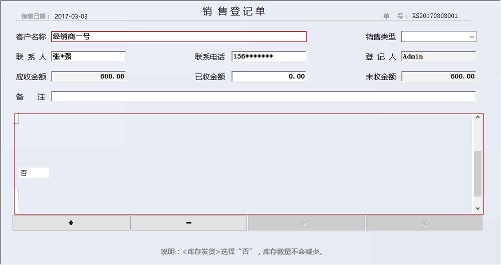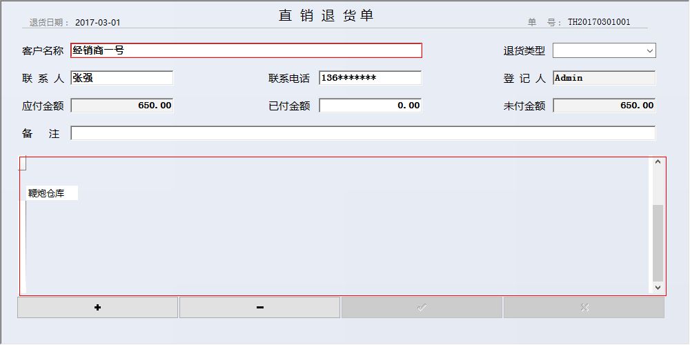 主要功能包含: 一、基础信息:公司信息、商品总类别、商品子类别、供应商信息、仓库名称、商品信息、客户信息、人员信息、数据初始化 二、进货管理:入库登记、退货登记、入库期间查询、退货期间查询、供商款项统计 三、销售管理:批发登记、直销登记、批发退货、直销退货、批发期间查询、直销客户期间查询、批发退货查询、直销退货查询、客户付款登记、客户欠款统计 四、库存明细:当前库存汇总、分类库存汇总、月度库存报表、仓库库存汇总、期间库存报表、库存预警 五、统计查询:期间利润统计、利润分析、今日录入统计、直销客户欠款、批发客户欠款 六、其他收支:其他费用支出、其他费用收款、期间收支汇总 |