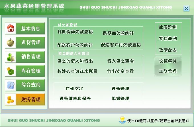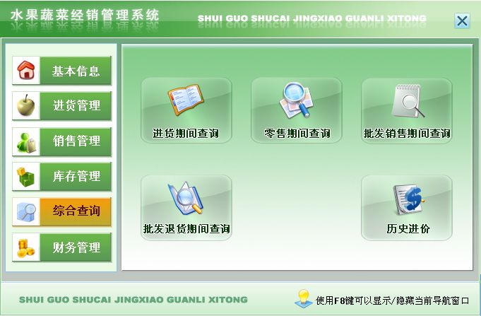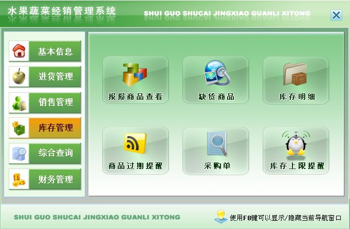 《水果蔬菜经销管理系统》是一套针对水果蔬菜经销管理的软件,能够实现对水果蔬菜经销的管理,也可以方便快捷的查询水果蔬菜信息。该系统集信息采集、分类、汇总、查询、统计等各种处理为一体,各种操作既可以通过菜单进行,又可以通过系统的管理树导航进行。信息录入智能化,极大提高工作效率。操作快捷、方便,性能高效、强大;使用易懂、易会。丰富多彩的特色令您惊喜!
