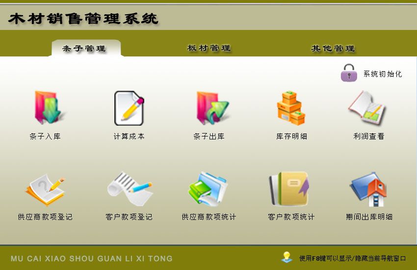 《木材销售管理系统》是适用于木材销售公司的软件,本软件把木条和板材分开,便于用户操作及管理。木(条)材入库后根据费用情况,经过计算成本模块后,计算成本情况,出库后,可以得出正确的利润。轻松的查看时间段内的利润情况,供应商及客户的欠款情况。另包括车费管理和银行卡的管理。软件具体功能包括:条子管理(条子入库、条子出库、库存明细、利润查看、供应商款项登记、客户款项登记、供应商欠款统计、客户欠款统计、期间出库明细);板材管理(板材入库、板材出库、库存明细、利润查看、供应商款项登记、客户款项登记、供应商欠款统计、客户欠款统计、期间出库明细);其他管理(条子车费和板材车费);银行卡管理(条子卡原余额设置,条子银行卡流水帐,板材卡原余额设置,板材银行卡流水帐);系统初始化。网站提供免费的下载试用,该软件购买之后将提供升级,技术支持,售后服务。 |