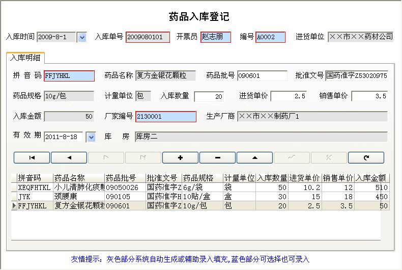 《药店销售管理系统》适用于中小型药店以及药品批发行业的管理软件。该软件在功能方面包括了:基本资料(客户资料、生产厂家、员工信息、药品信息、进货单位、药店信息);药品入库(药品入库、期间入库明细);药品销售(销售登记、销售退货、期间销售明细、期间退货明细);其他费用(其他支出、其他收入);库存管理(当前库存明细、当前库存、效期预警、库存预警);收入与利润统计(期间收入统计、期间利润统计、客户收款统计)以上功能;软件特点:1.支持POS小票机的打印;2.界面设计简洁、美观、操作流程人性化,普通用户不需培训也能很快上手;3.每条入库、销售记录均可添加项入库销售药品,满足实际需要。 |