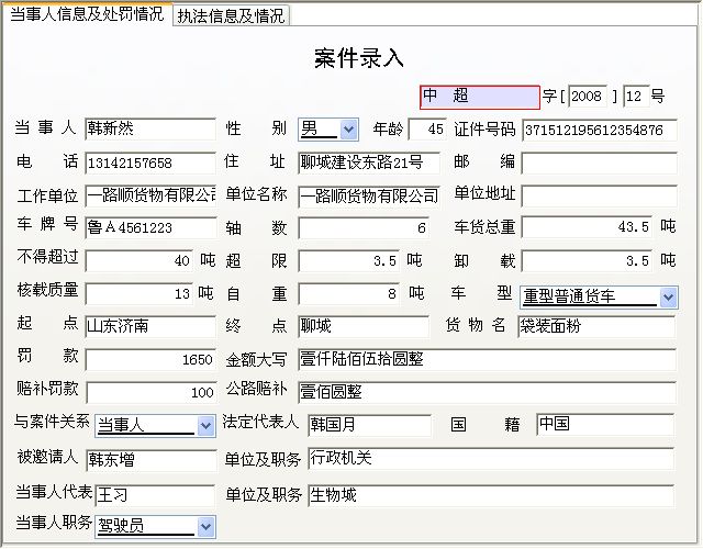 《交通执法文书管理系统》是一套完整精致且集基本信息、案件录入为一体的管理系统。其中基本信息包括:基础信息录入、执法人员录入。案件录入包括“处罚不卸货赔补偿文书”、“处罚不易卸货文书”、“处罚卸货赔补偿文书”、“处罚卸货文书”、“处理文书”、“大件运输”、“赔补偿文书”每个文书下都有相对应的文书报表,文书报表即可单个打印也可整套打印。 本站提供免费的下载试用,详细的可以到:http://www.inmis.com查看;该软件购买之后将提供终生的免费升级、免费技术支持、免费售后服务。如有任何问题您可以随时和我们联系,联系电话:0635-8386265(销售部)0635-8386255(技术部) |
