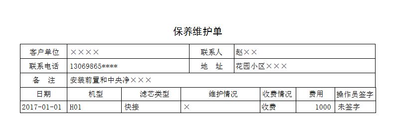 《净水器维修保养管理系统》是一款针对净水器维修保养服务中心管理所设计的一款软件,它可以记录每个客户的信息及安装时间,以及维修保养记录,该何时到期保养提醒等信息,是一款有效的管理软件,具体功能包话如下: