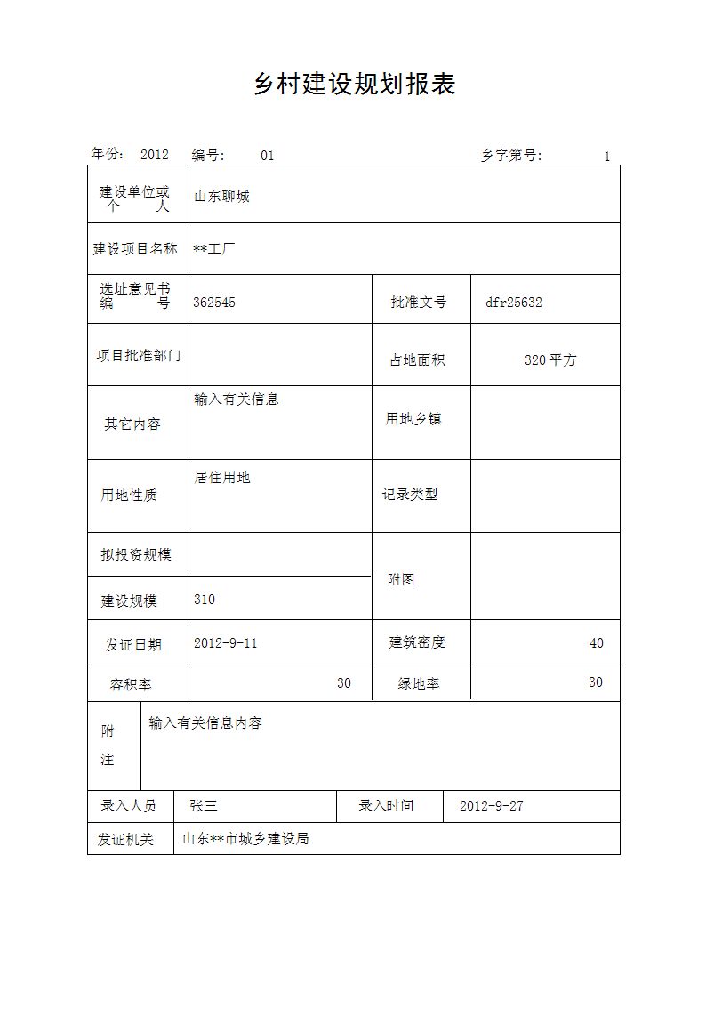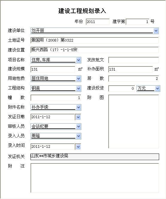 建设工程规划录入: