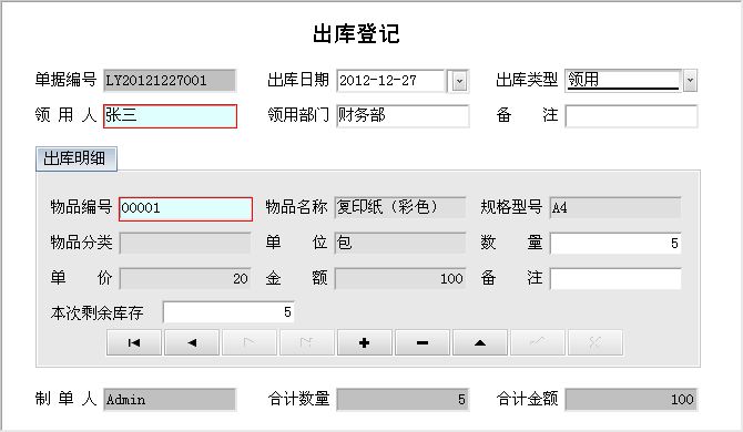 ,降低成本,真正实现厉行节约的原则。本系统界面简洁优美,操作直观易用,不需专门培训即可正常使用。轻松实现物品管理工作的信息化、规范化与标准化,是办公用品管理的首选工具。 适用单位:任何企事业单位。 使用人:行政部、行政人员、办公室、各类低值易耗品管理人员 系统主要功能: 一、系统录入功能 1、基本资料:物品分类、物品清单、领用人、供应商、计量单位、客户类型、出库类型、入库类型。 2、业务管理:出库登记、入库登记 二、查询功能: 根据不同的查询统计条件显示出需要的结果。 物品分类汇总表、部门领用汇总表、人员领用汇总表、商家供货汇总表、库存变动汇总表、超限库存预警表、物品出入明细表。 三、报表功能: 根据查询或者统计出来的结果生成报表。 四:打印功能: 系统支持打印功能,如想打印信息单击预览报表上的打印按钮即可。 五、安全功能: 进入系统后,单击菜单“系统→工具→用户及权限”可以设置系统的各用户权限。 六、数据备份与恢复功能: 可备份在硬盘或其他可移动磁盘中,并可对备份的数据进行多项操作。 七、适应性: 适应在WINDOWS98/ME/2000/XP系统上运行。 八、灵活的版本选择: 系统有单机版和网络版,可以安装在每台电脑上,分别是数据独立的单机版和数据共享的网络版。 |
