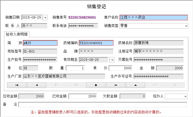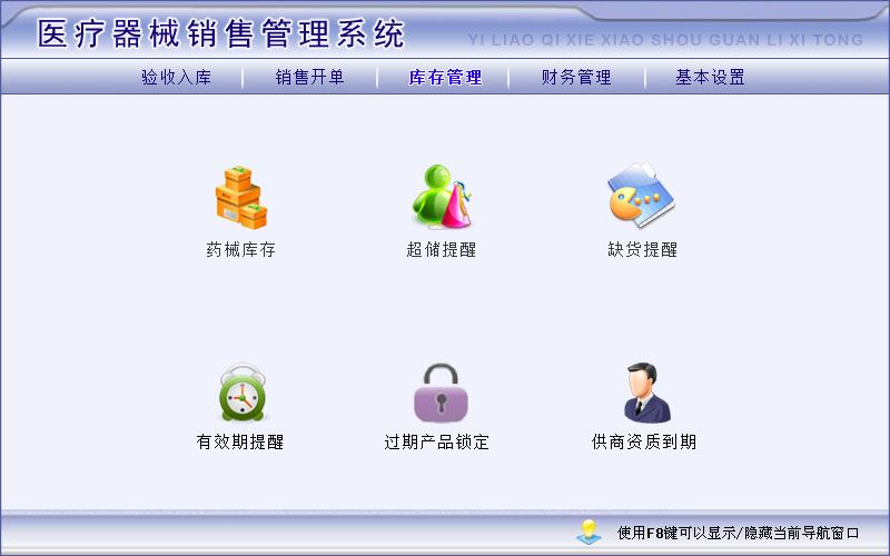 《医疗器械销售管理系统》是一款专业的针对医疗器械销售的管理软件,该软件广泛适用于中小型公司企业、商场、门店等。系统主要包括 基本设置、验收入库、销售开单、库存、财务管理、有效期提醒、过期产品锁定、供商资质到期提醒。提供统计任意时间段的进货明细、销 售明细等信息,能满足药监局所要求的基本功能。具体功能包括如下: 验收入库:验收入库登记、期间进货明细表、验收入库退货、期间入库退货明细。 销售开单:销售登记、期间销售明细表、销售退货、期间退货明细表。 库存管理:药械库存、超储提醒、缺货提醒、有效期提醒、过期产品锁定、供商资质到期。 财务管理:应收帐款(应收帐款登记、应收帐款统计)、应付帐款(应付帐款登记、应付帐款统计)、其他收入、其他支出。 基本设置:供货商信息、客户信息、员工信息、药械信息、生产厂家。 软件特点如下: 1.界面设计简洁、美观、操作流程人性化,普通用户不需培训也能很快上手; 2.支持数据与execel的导出与导入。