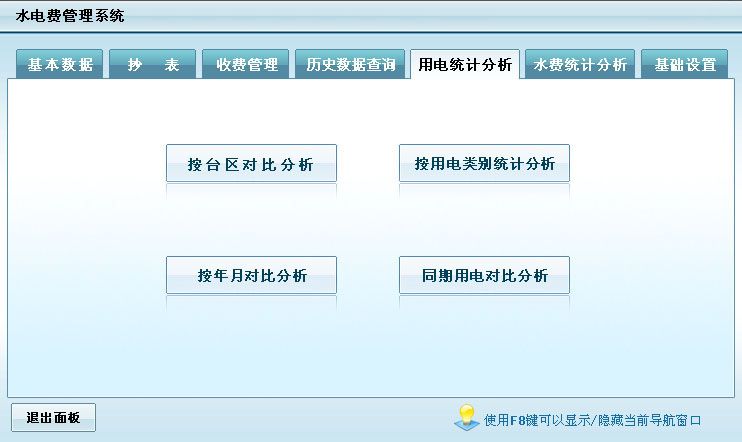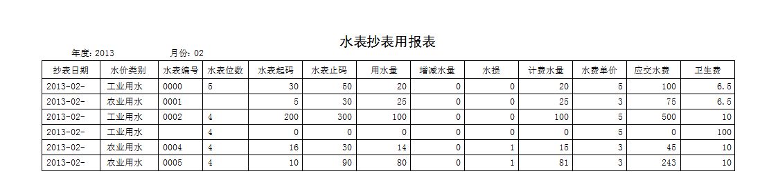 6、用水统计分析(按水价类别进行统计、按年月统计金额、按台区对比分析和同期用水对比分析);