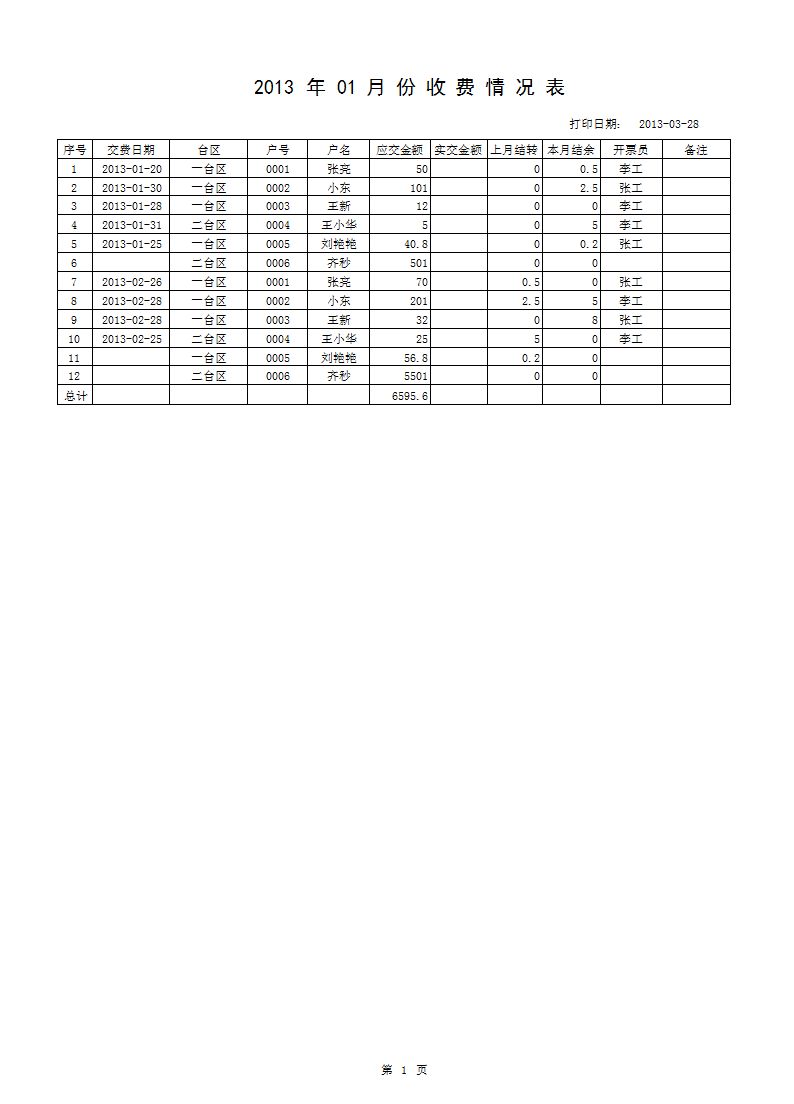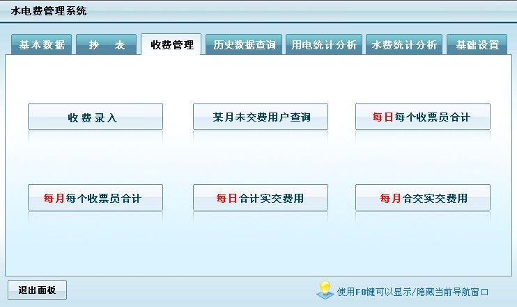 3、收费管理(收费录入、某月未交费用户查询、每日每个收费员合计、每月每个收费员合计、每日合计实交费用和每月合计实交费用);