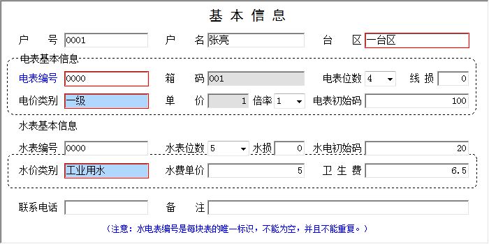 7、基础设置(水价类别设置、台区设置、电价类别设置和卫生费设置)。