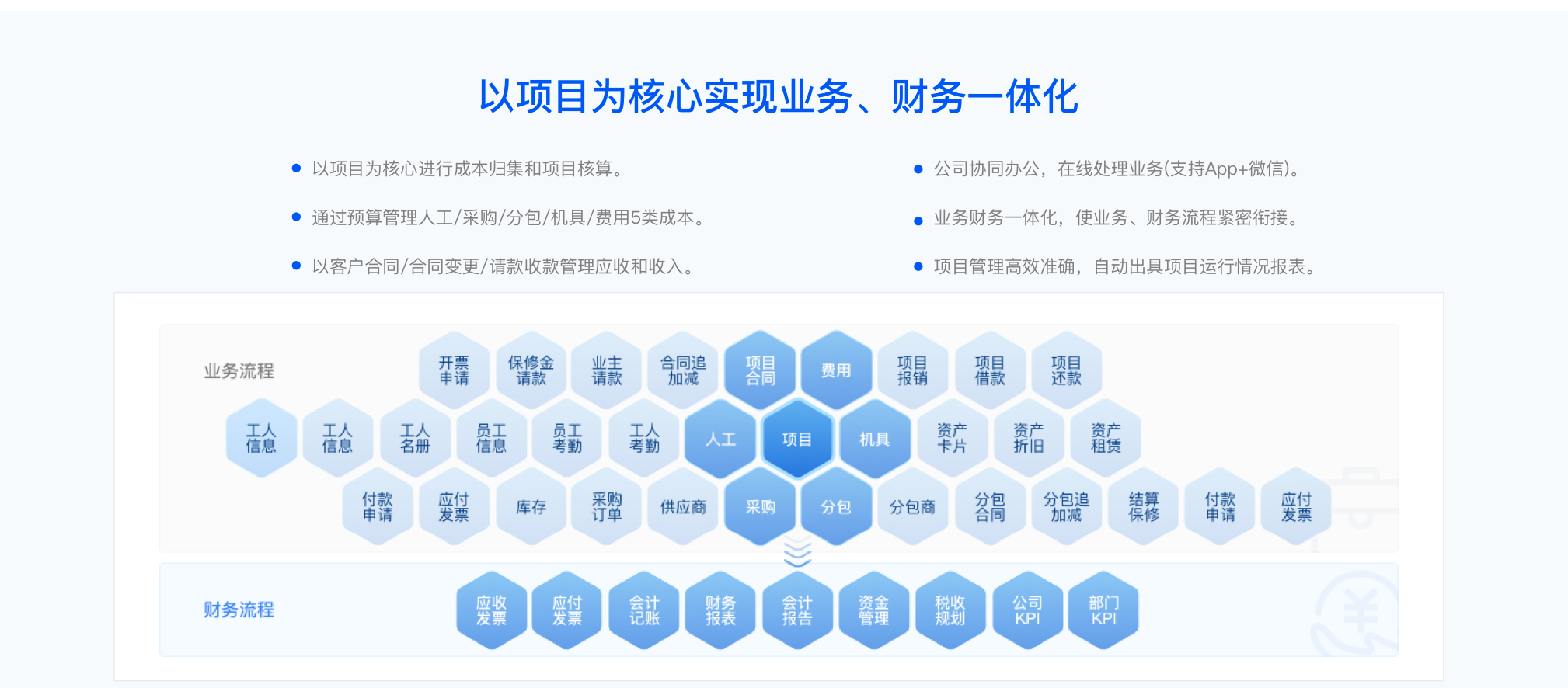 互联网时代下,设计工程行业通过云计算、移动应用(App+微信)等信息化、数字化技术,加强项目成本管控,提高企业运营效率的诉求愈发强烈。但基于传统财务ERP系统+办公自动化OA系统+项目管理系统PMS等多个单项业务系统,再予以整合的方式进行企业信息化,越来越容易遇到业务/财务流程分离陷阱和系统整合壁垒。