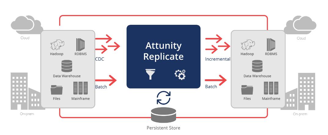 在所有主要数据库,数据仓库和Hadoop,本地和云端复制,同步,分发,整合和提取数据。 Attunity Replicate已可以实现: