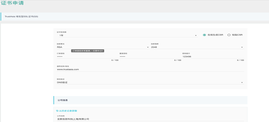 7. 订单提交后,EV和OV证书则需要审核域名及企业信息,通常企业型证书颁发需要3~5个工作日,增强型证书则需要5~7个工作日。