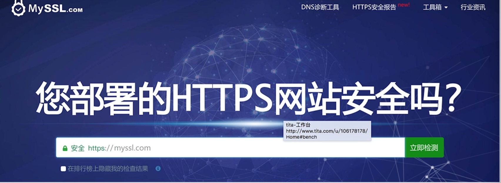 9.2 在线检测:访问https://myssl.com ,输入域名一键扫描,了解部署的HTTPS安全等级情况,以及是否需要优化。