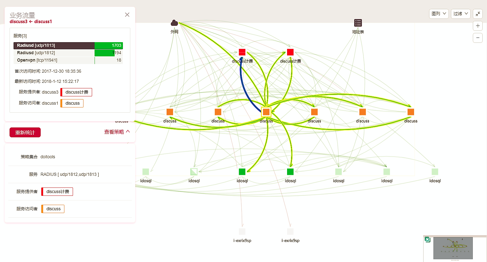 蔷薇灵动自适应安全平台,通过蜂群安全管理终端不断的搜集流量信息,并将这些信息汇总到蜂后安全计算中心,由策略计算引擎根据这些信息统一绘制出一张完整的流量模型图。