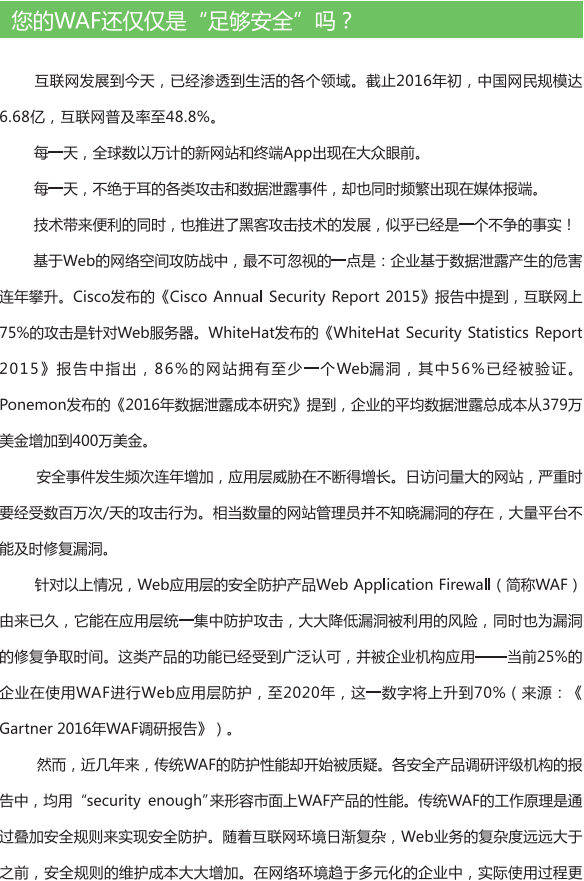 Application Firewall),能够基于上下文逻辑实现攻击检测,还原出经过层层伪装变形的攻击向量,并从编码的基