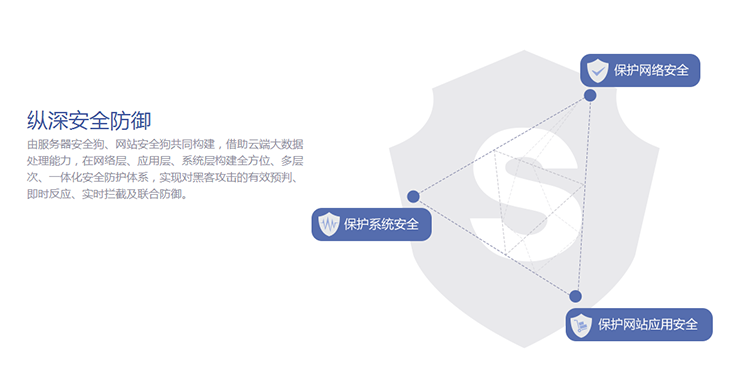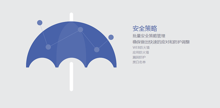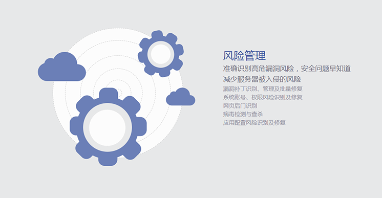提供包含自动化系统风险识别和加固、多层次联动纵深安全防护(防黑/防入侵/抗攻击)、云端实时监控、云安全管理以及基于大数据架构的安全事件分析等功能,让您的安全管理变得“主动、可视、可防、可知、可管”。