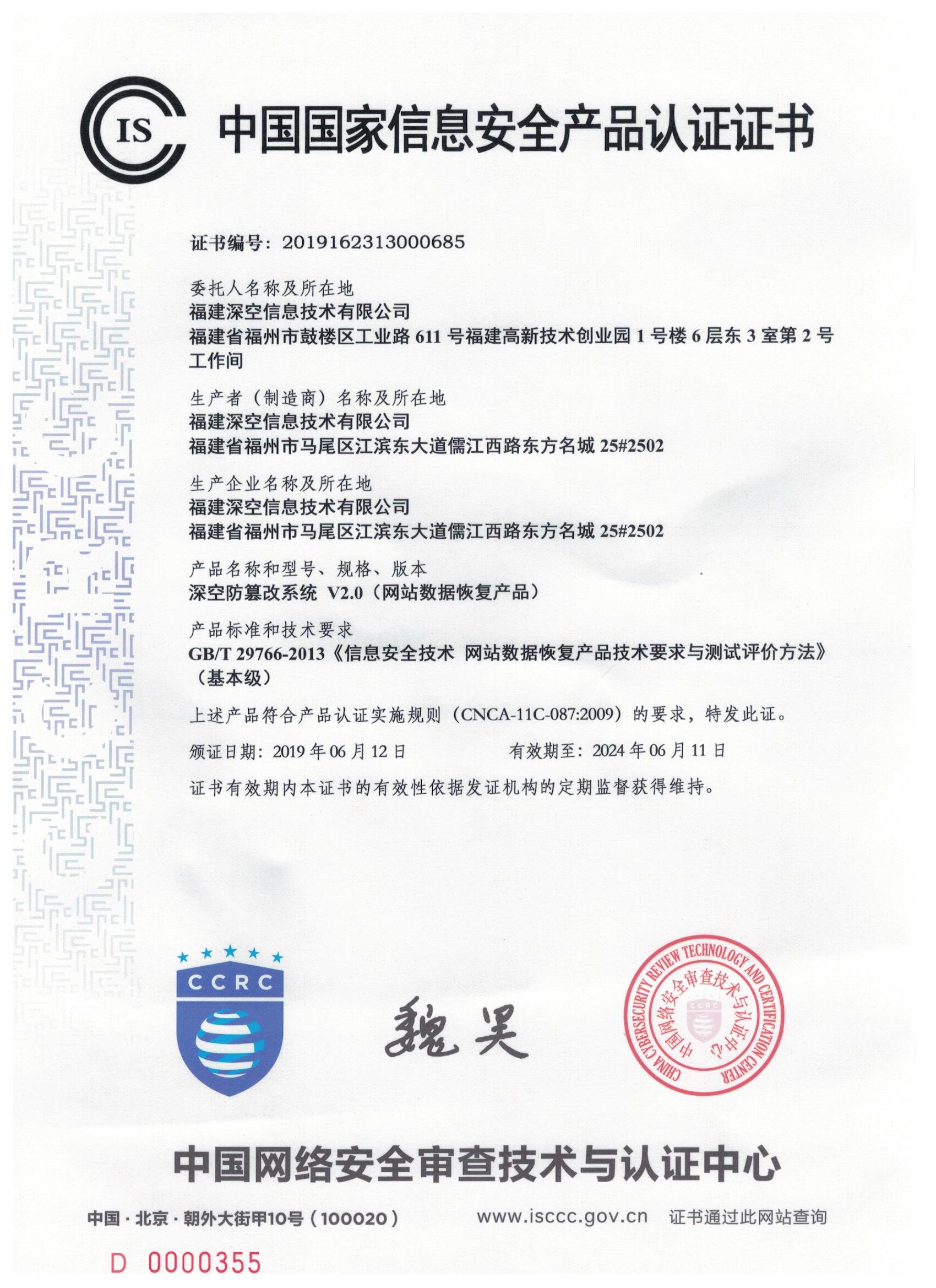 中国网络安全审查技术与认证中心《中国国家信息安全产品认证》(ISCCC)