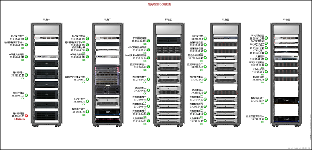 实时监控中间件、操作系统、虚拟机、服务器、存储、网络等主流软硬件的运行状态,实现数据中心IT资产全面监控。