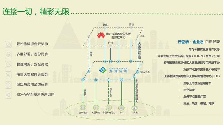 游驰网络覆盖全国27个省(直辖市、自治区),提供1M~10G的专线带宽,适用于企业不同场景的混合云互联。