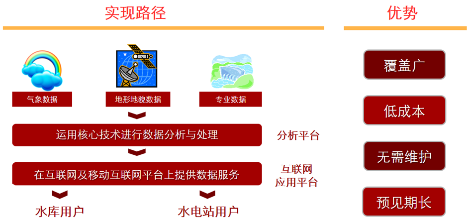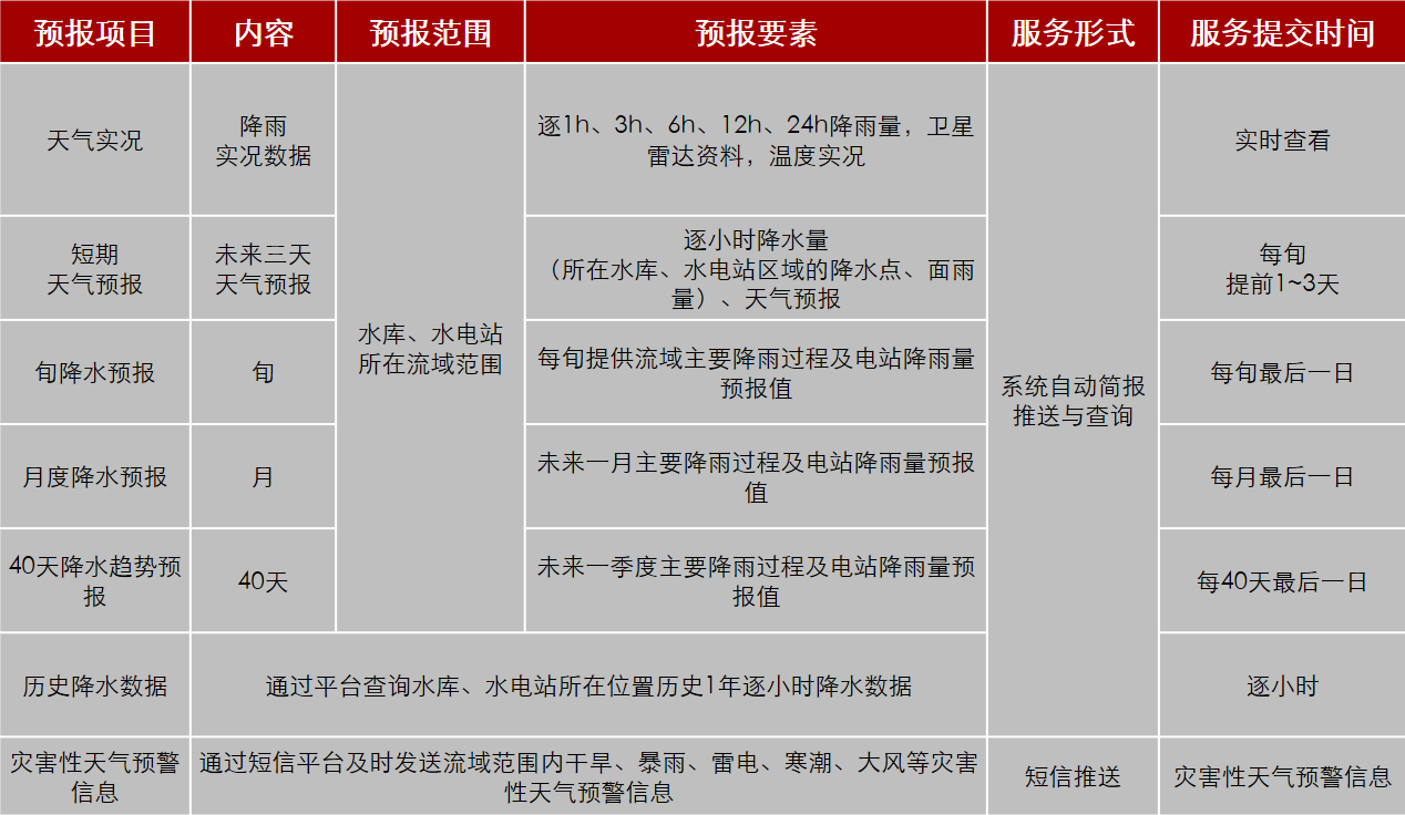 本产品融合气象水文、地理信息、水利工程等数据,通过大数据与人工智能技术,基于华为云平台,提供水库、水电站洪水预警预报服务,服务包含山洪快速预警、中长期来水预报及气象服务等服务内容。