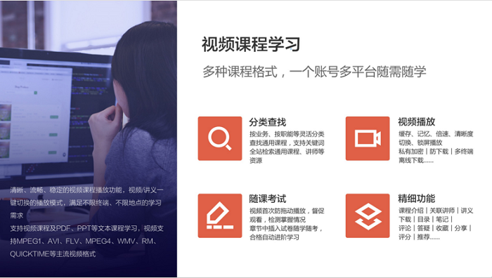 内训宝致力于为大中型企业提供平台+内容+运营的专业化产品及服务,制定培训系统整体解决方案,其中包括平台搭建、课程建设、专家服务、运营支持等,为企业打造“先进、易用、稳定、个性化”的