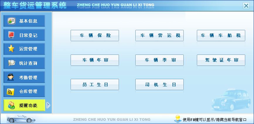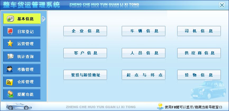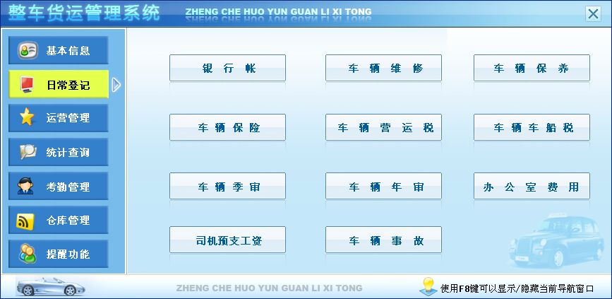 《整车货运管理系统》是一款适用于物流公司货运类型为整车型的管理软件,它包括基本信息(企业信息、车辆信息、司机信息、客户信息、人员信息、供应商信息、装货与卸货地址、起点与终点、货物信息)、日常登记(银行帐、车辆维修、车辆保养、车辆保险、车辆营运税、车辆车船税、车辆季审、车辆年审、办公室费用、司机预支工资、车辆事故)、运营管理(运营记录、期间运营明细、往来帐目、来往帐目、往来查询)、统计查询(出车费用统计、每趟出车利润查询、车辆利润统计)、考勤管理(考勤登记、考勤查询)、仓库管理(零件信息、入库、出库、库存查询)、提醒功能(车辆保险、车辆营运税、车辆车船税、车辆年审、车辆季审、驾驶证年审、员工生日、司机生日)。软件界面设计简洁、美观、其人性化的管理可以使用户轻易上手,提升服务质量,提高工作效率,是协助各物流公司合理和优化管理的好帮手! 软件界面设计简洁、美观其人性化的管理可以使用户用轻易上手,提升服务质量,提高工作效率。科学的管理方法会给您带来无限的效益,该整车货运管理软件将是您明智的选择。 |